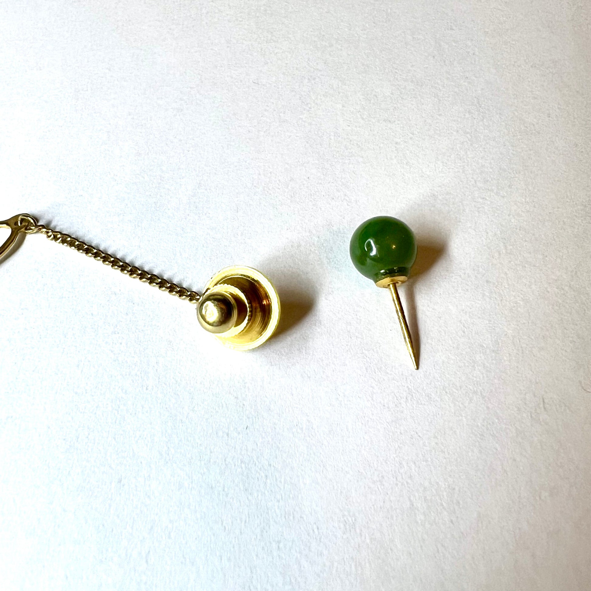 Gold Tone Green Stone TIE TACK