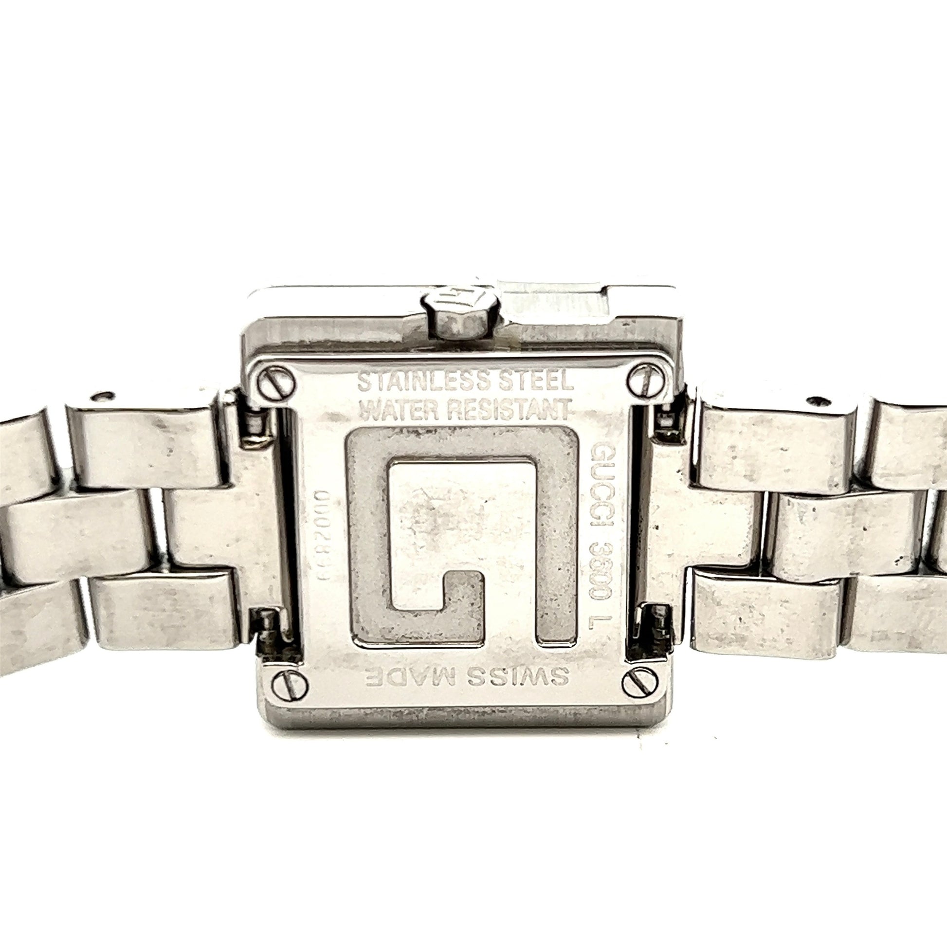Case: Glossy Stainless Steel stamped 'GUCCI ', '3600 L', 'Swiss Made', 'Stainless Steel', ‘Water Resistant’ and Serial Number