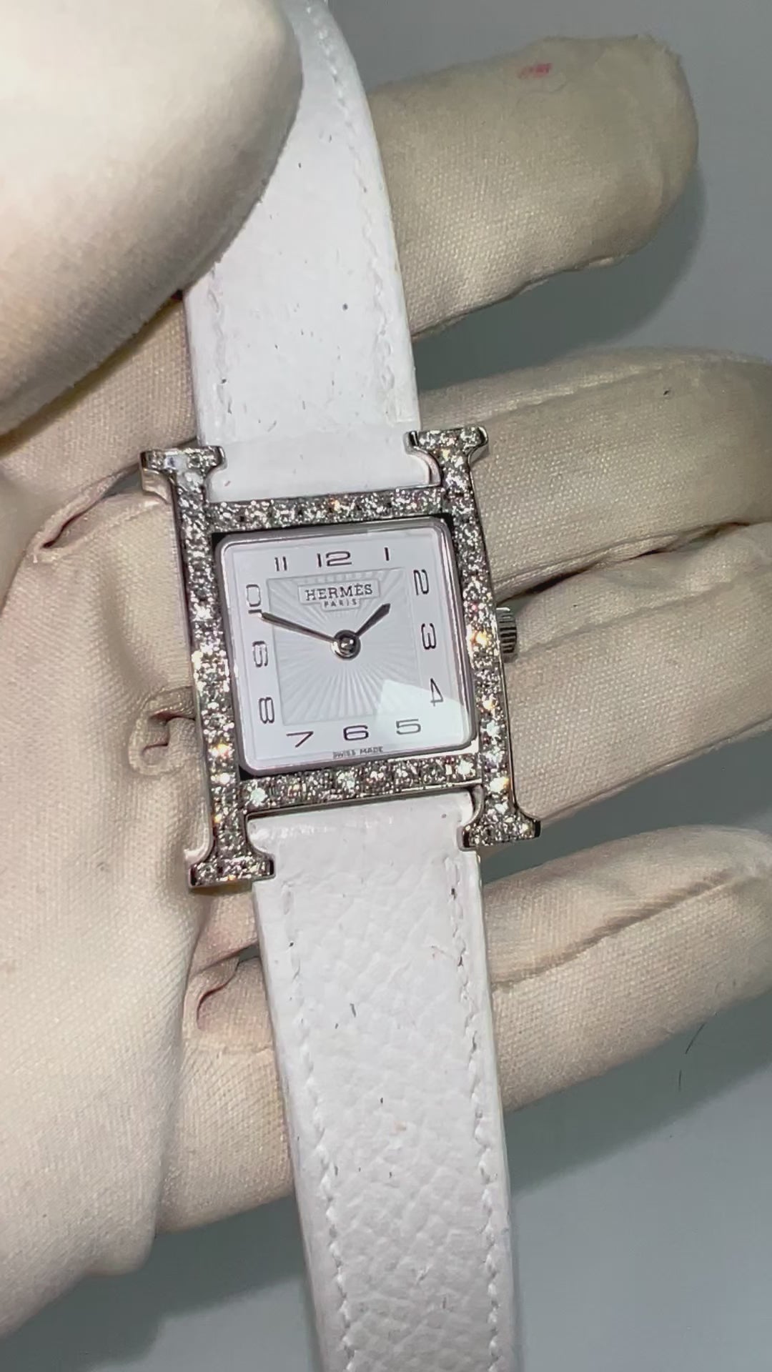 Authentic Pre Owned HERMÈS HEURE H Quartz 25mm Steel 0.91TCW DIAMOND Watch NEW Model