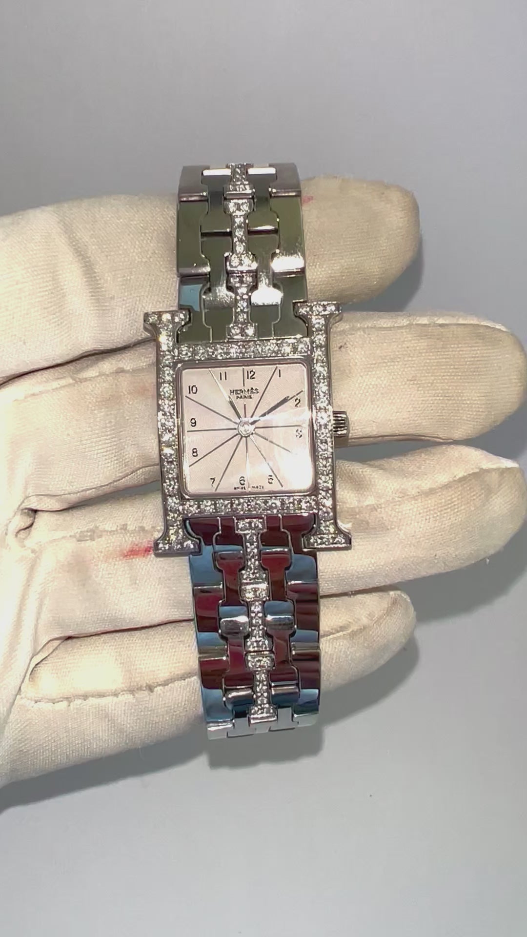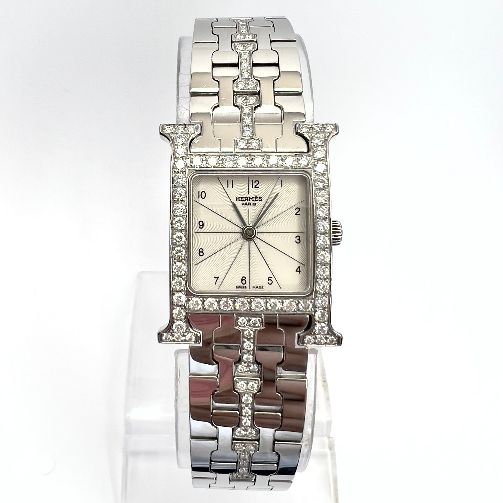 Authentic Pre Owned HERMÈS HEURE H Quartz 25mm Steel 1.45TCW DIAMOND Watch