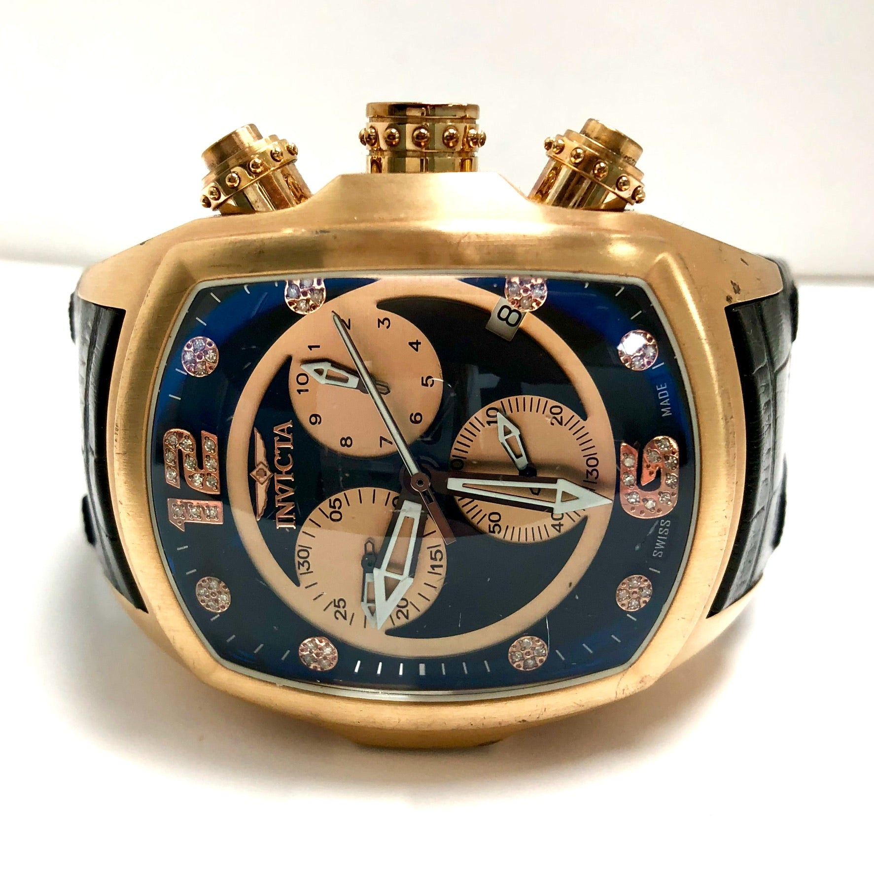 Authentic Pre Owned INVICTA LUPAH Chronograph Quartz 44mm Rose-Gold Tone Steel FACTORY DIAMONDS Watch