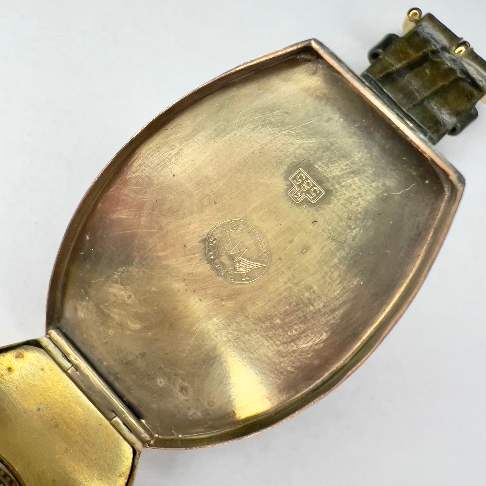 • Case: Domed Glossy 14K Rose Gold stamped 14K, 585