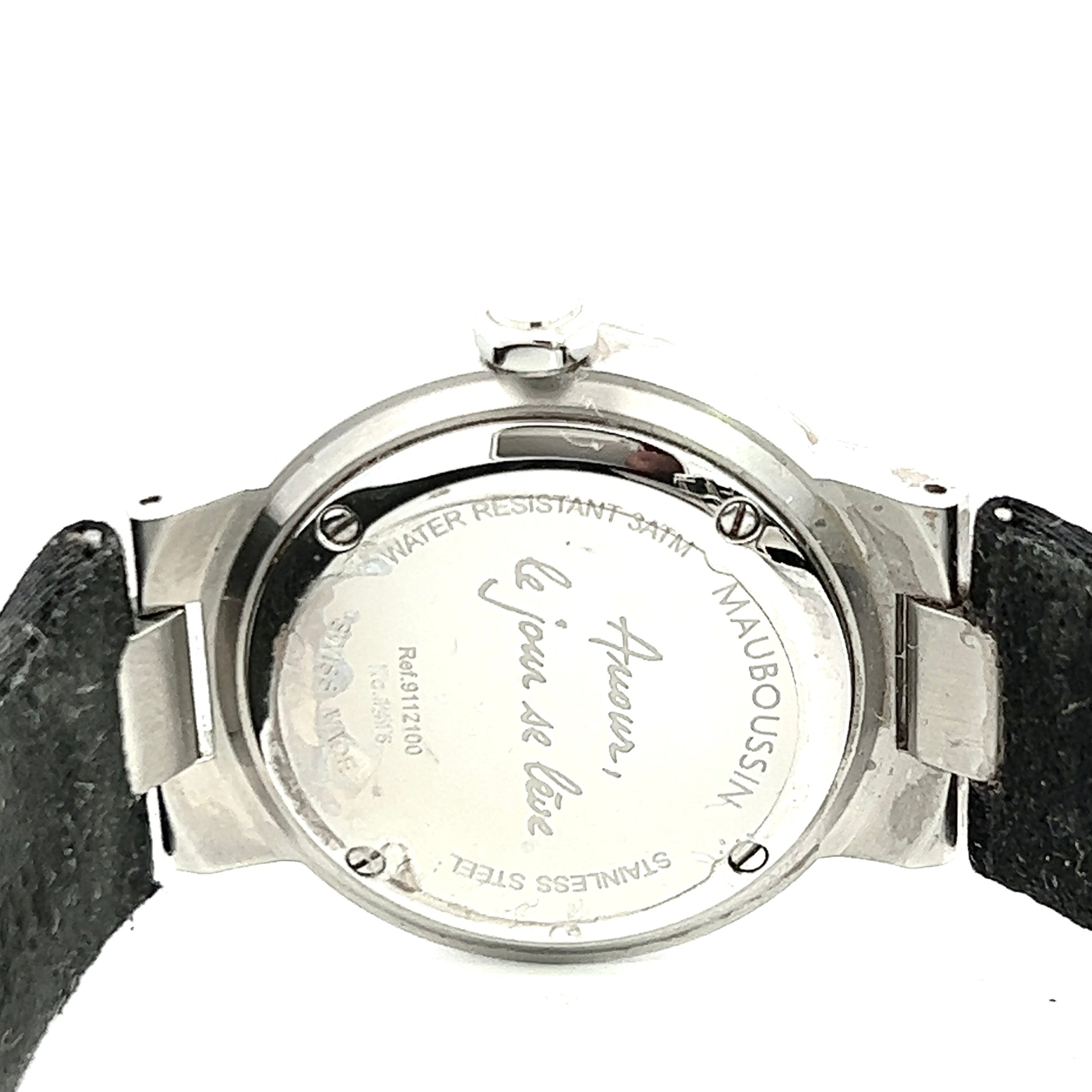 Case: Glossy Stainless Steel hallmarked ‘Mouboussin', 'Amour le jour seve', 'Stainless Steel', 'Swiss Made', 'Water Resistant 3ATM', Ref.9112100 and Serial Number