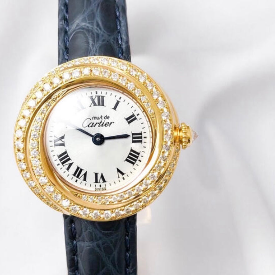 Authentic Pre Owned MUST DE CARTIER VERMEIL 27mm Quartz GP ~1.53TCW DIAMOND Watch