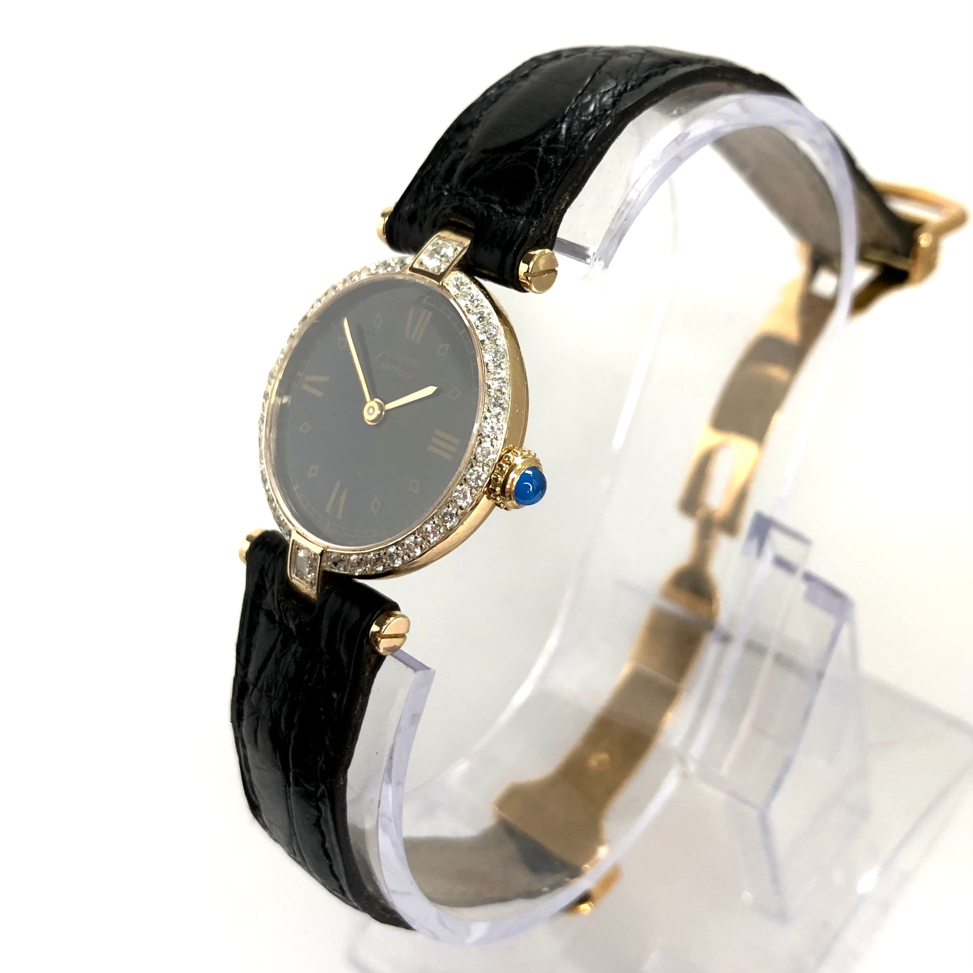 Authentic Pre Owned MUST DE CARTIER VERMEIL Quartz 24mm GP Argent 0.58TCW Diamond Watch