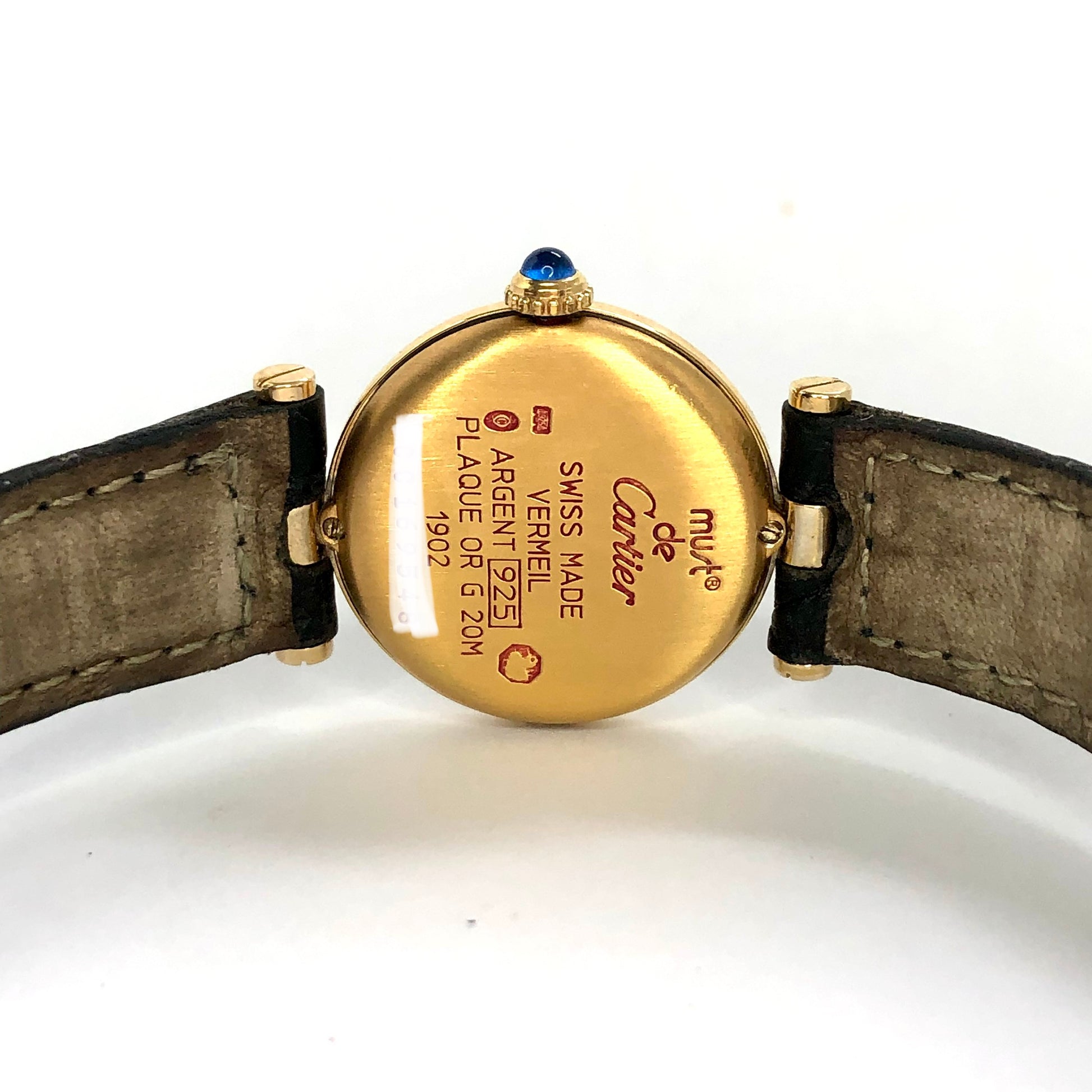 Case: Gold-Plated hallmarked ‘Must de Cartier’ and stamped ‘Swiss Made’, ‘Vermeil’, ‘Argent 925', 'Plaque Or G 20M’, ‘1902' and Serial Number.