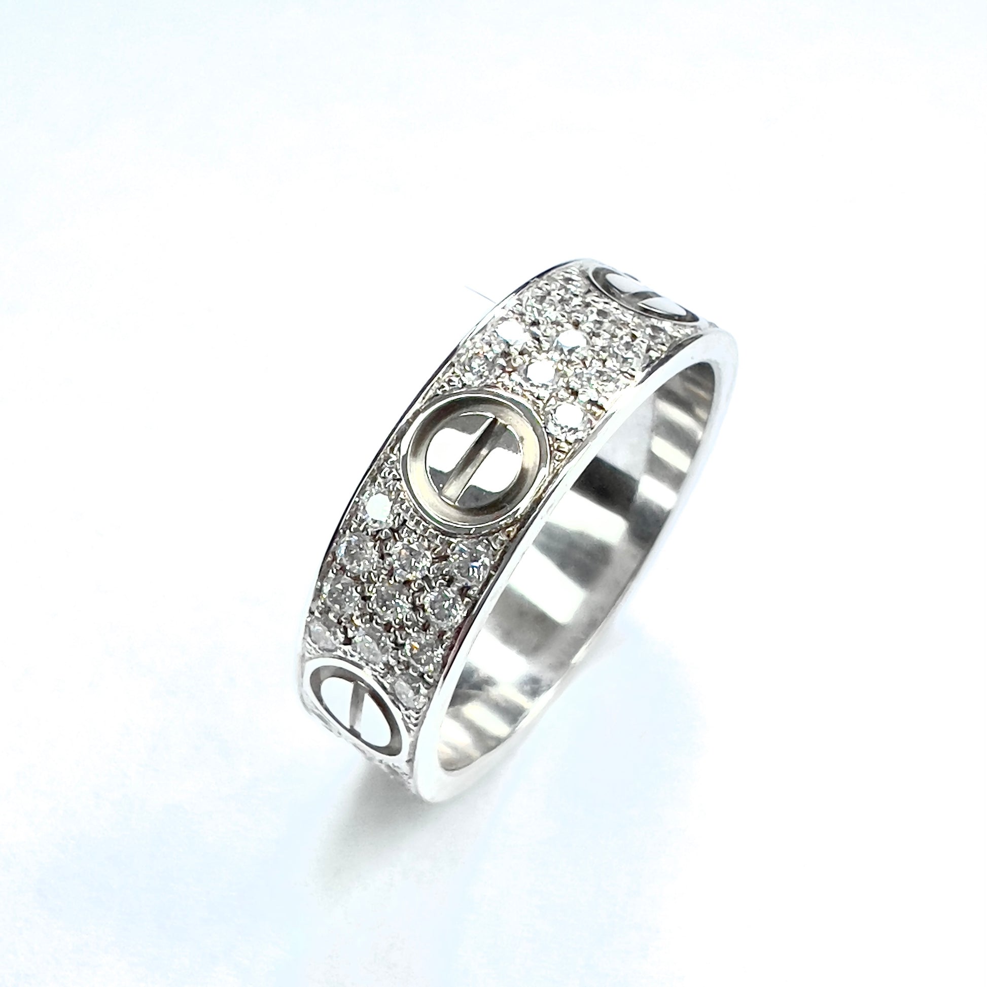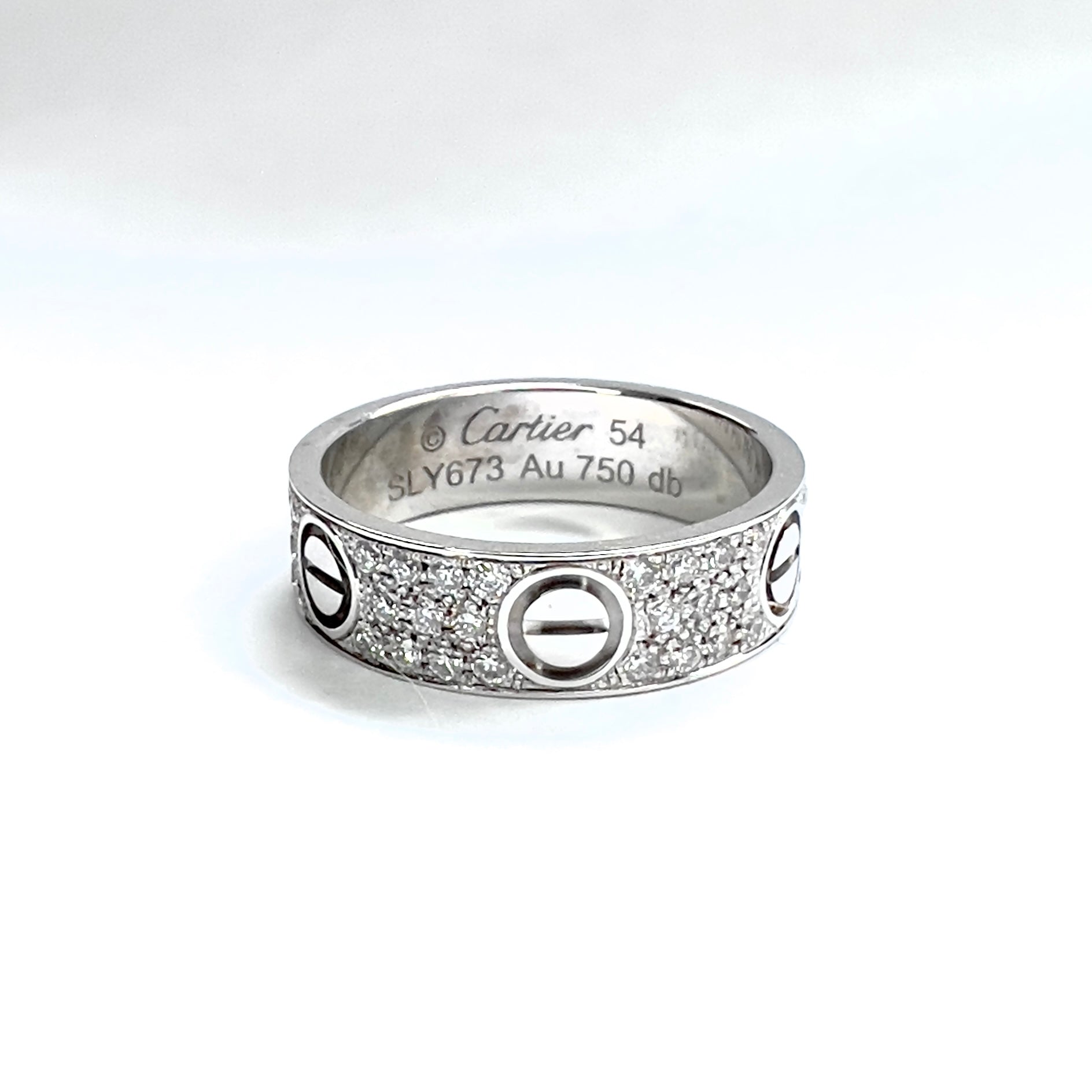 New CARTIER LOVE Ring 5.5mm 18K White Gold VS Pave Diamonds 0.68TCW