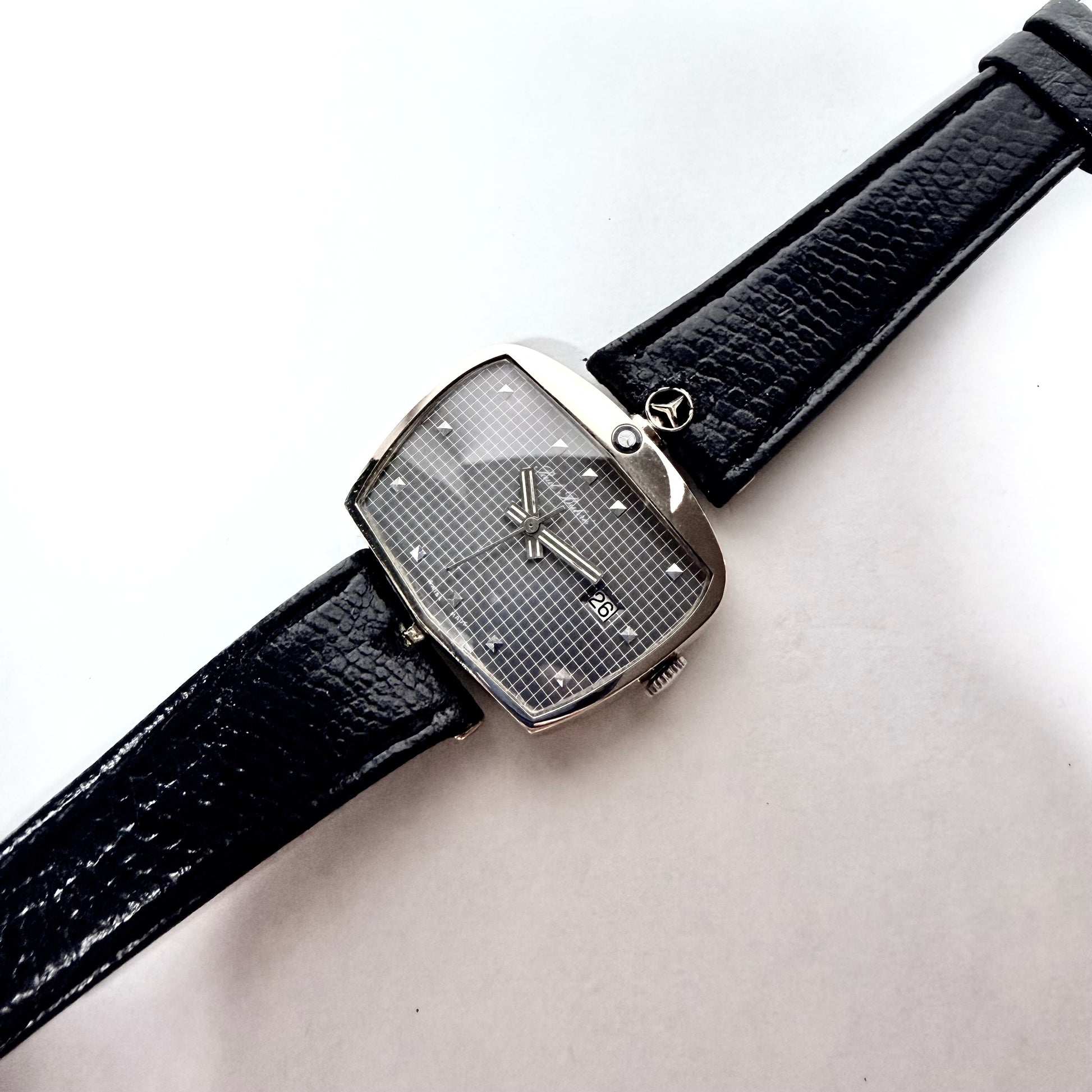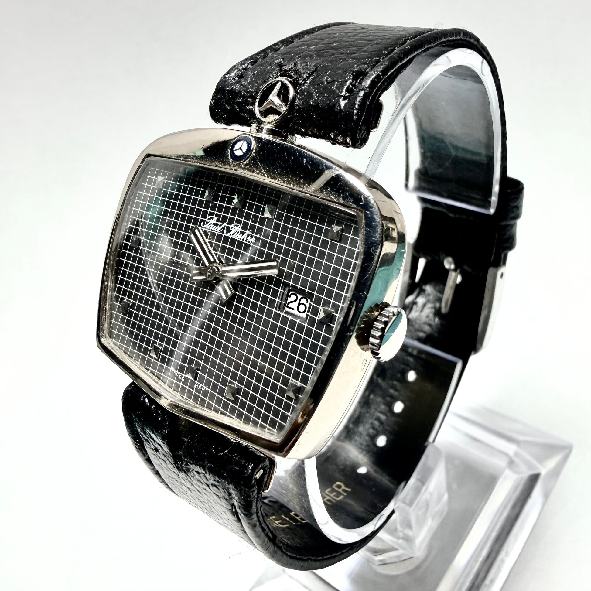 • Dial: Gray Grid-Patterned, hallmarked 'Paul Buhre', 'Swiss Made'.