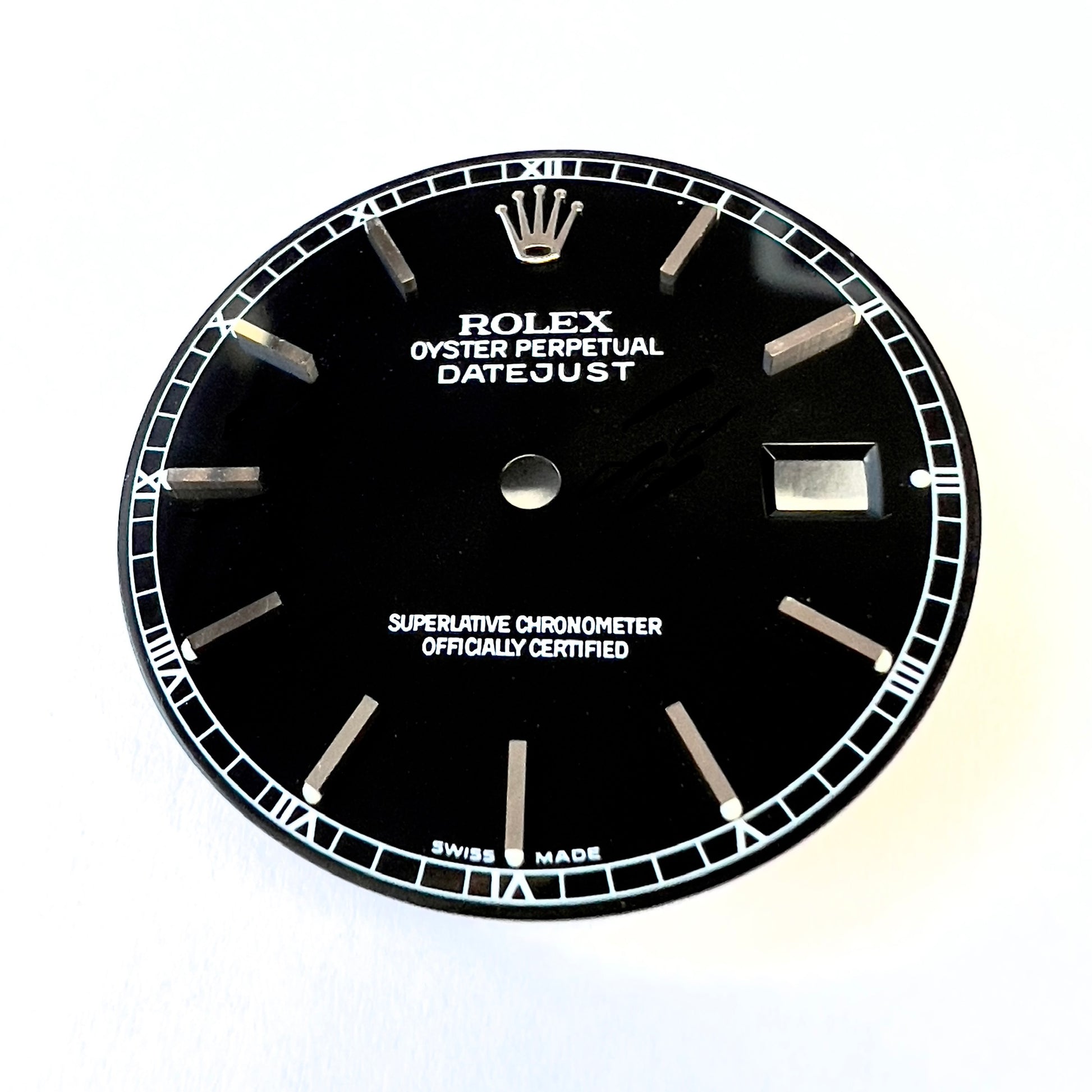 NEW Old Stock Authentic ROLEX 27.7mm Black Color Silver Hour Markers Roman Numerals DIAL for 36mm ROLEX DATEJUST