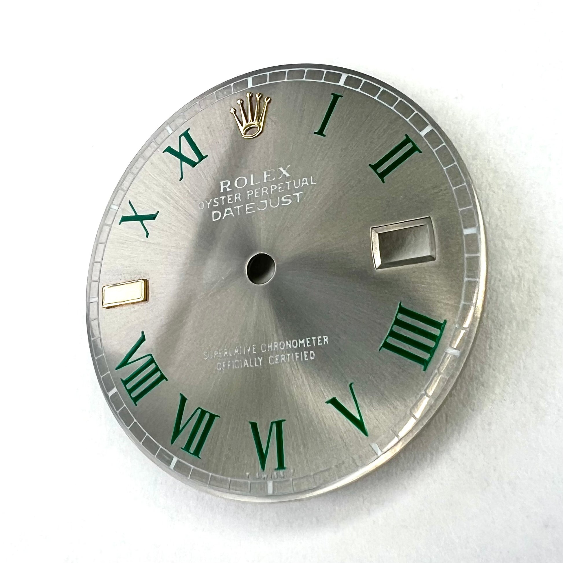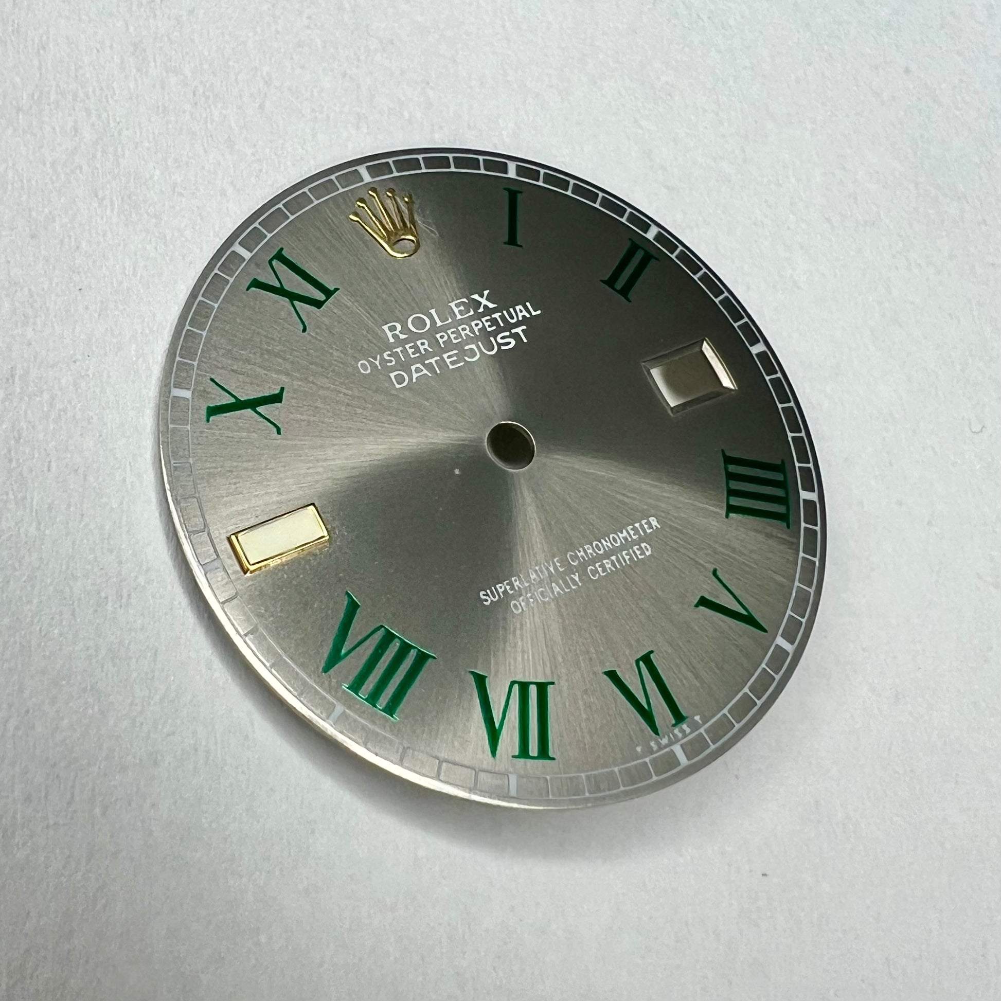 Authentic Refinished ROLEX 27.7mm Wimbledon Gray Color Green Roman Numerals DIAL for 36mm ROLEX DATEJUST