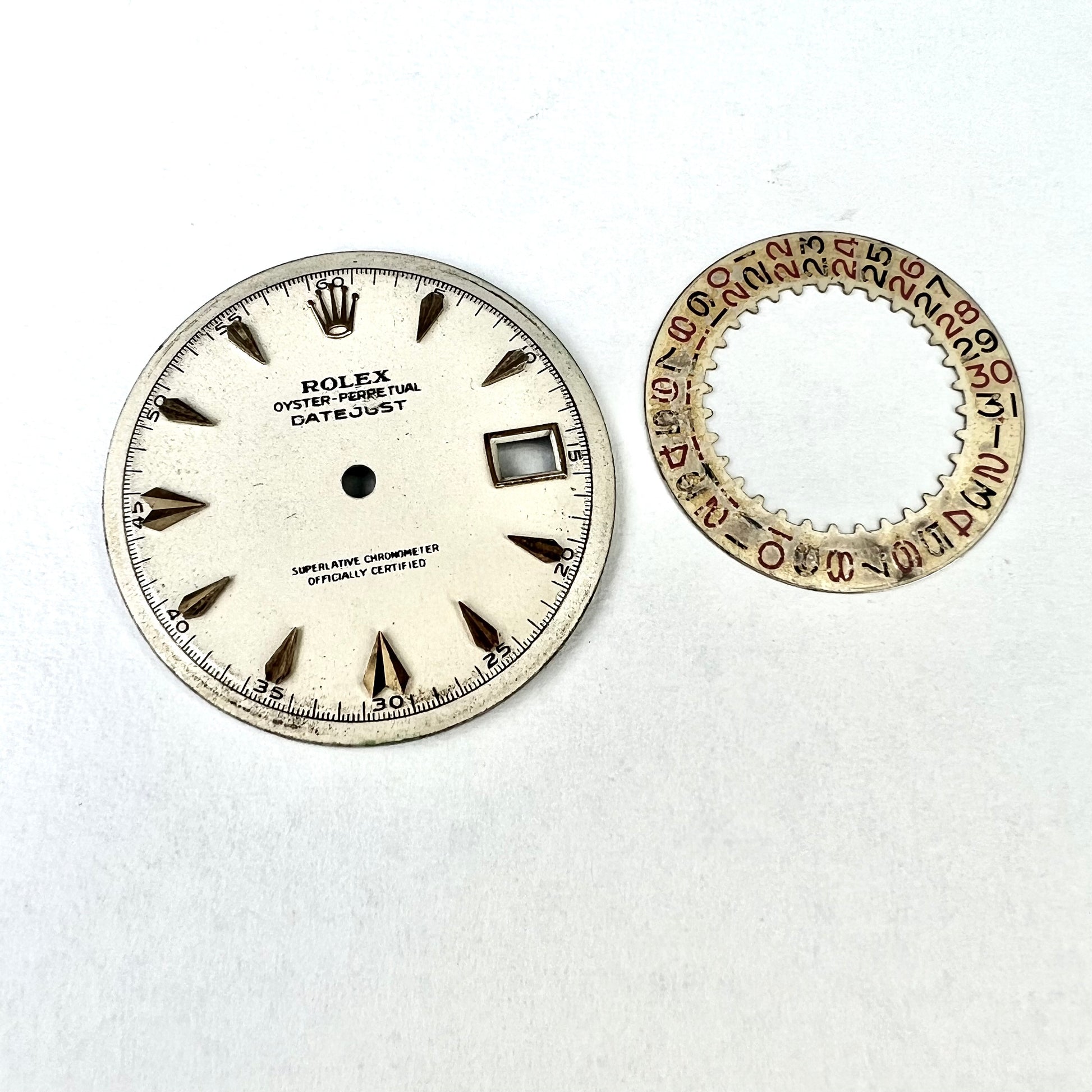 Pre Owned Authentic ROLEX 28.3mm White Color Gold Hour Markers Arabic Numerals DIAL + Calendar Wheel for 36mm ROLEX DATEJUST