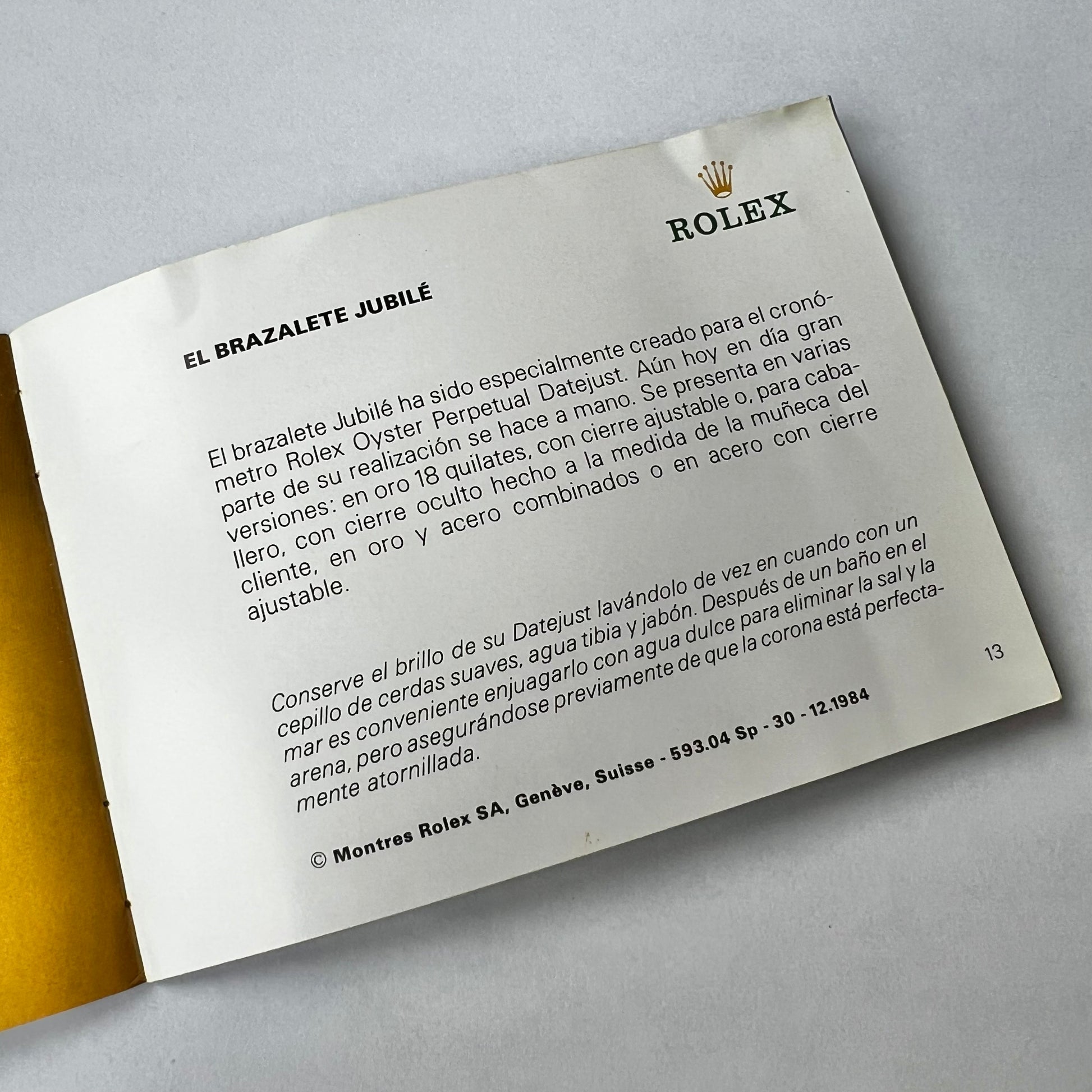 Authentic Pre Owned ROLEX Datejust 12.1984 Booklet/Pamphlet Spanish