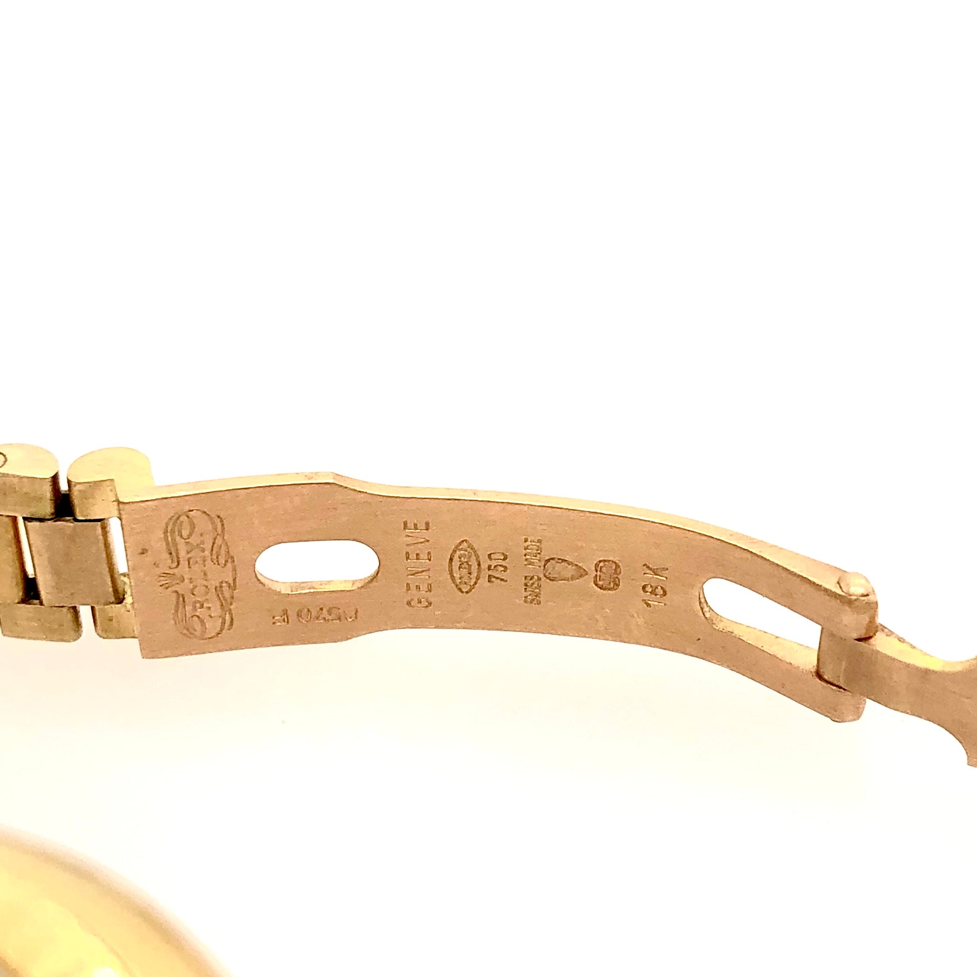 Clasp: 18K Yellow Gold Fold with Logo and stamped 'Swiss Made', 'Genève’, ‘Rolex', '18K’, ‘750’.
