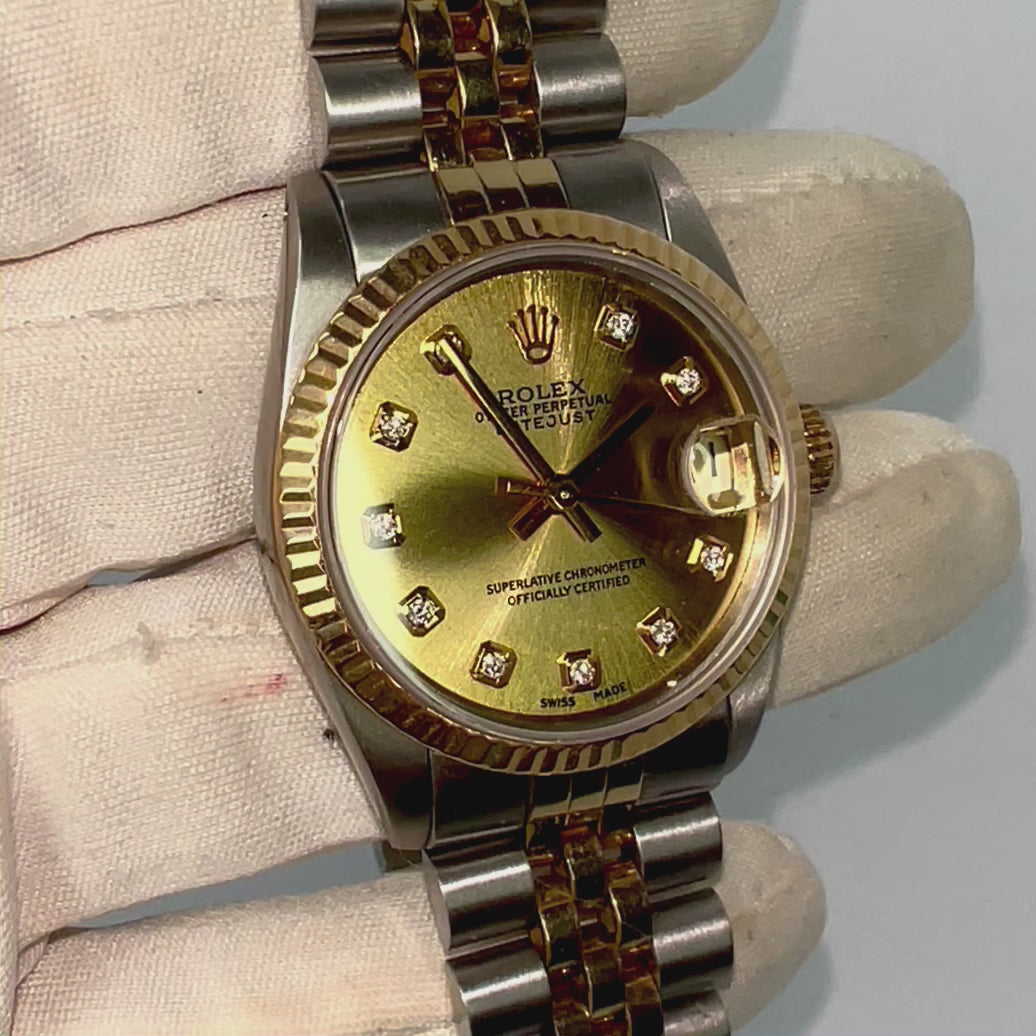 Authentic Pre Owned ROLEX Oyster Perpetual DATEJUST Automatic 31mm 2 Tone Diamond Watch