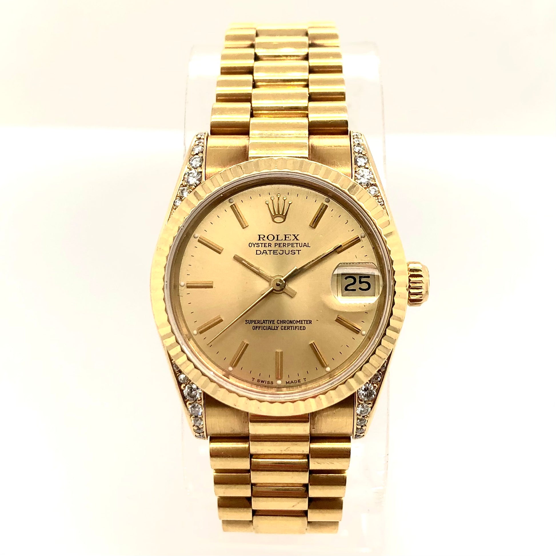 ROLEX DATEJUST PRESIDENTIAL 31mm 18K Yellow Gold Watch FACTORY DIAMONDS
