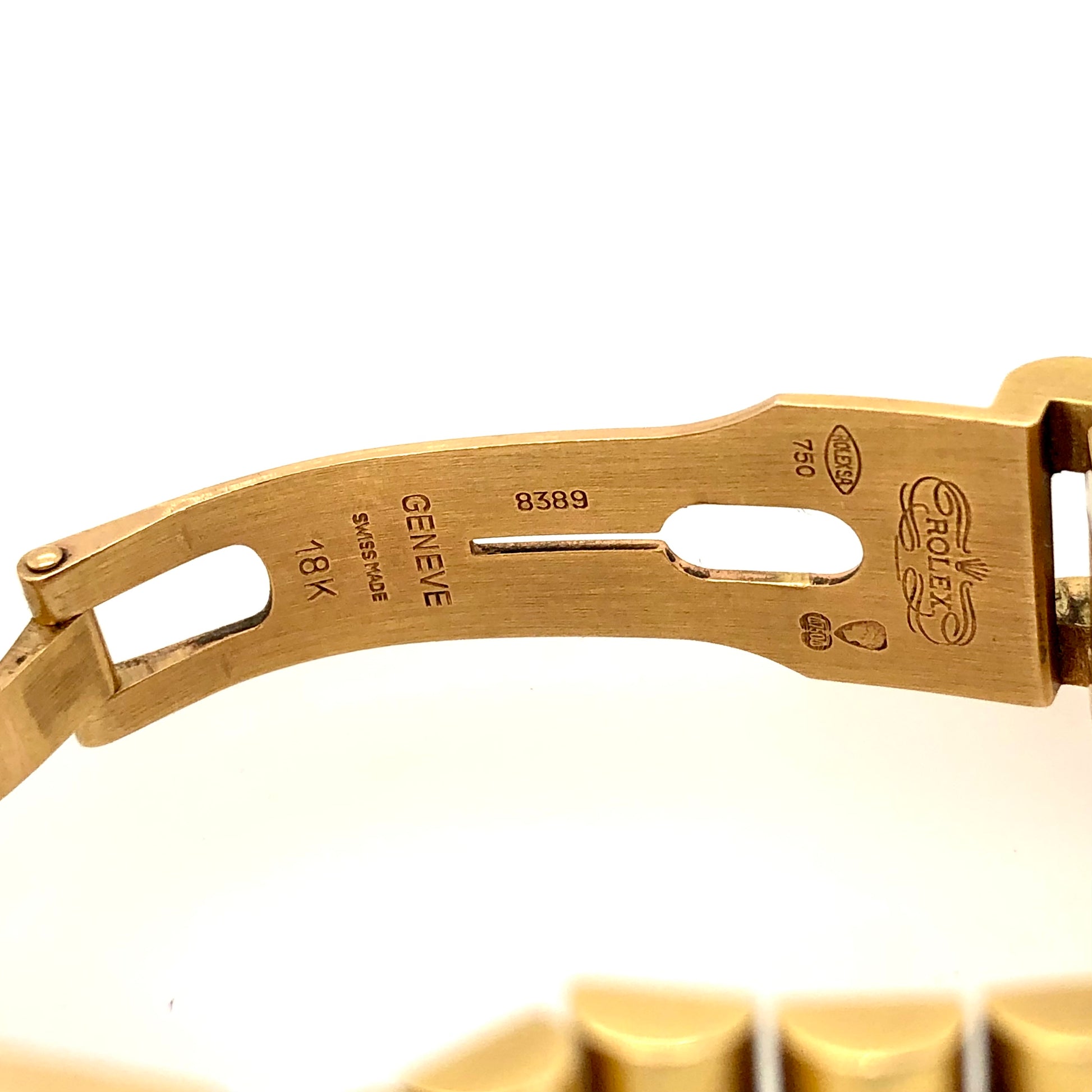 Clasp: 18K Yellow Gold Fold with Logo and stamped 'Swiss Made', 'Genève’, ‘Rolex', '18K’, ‘750’.