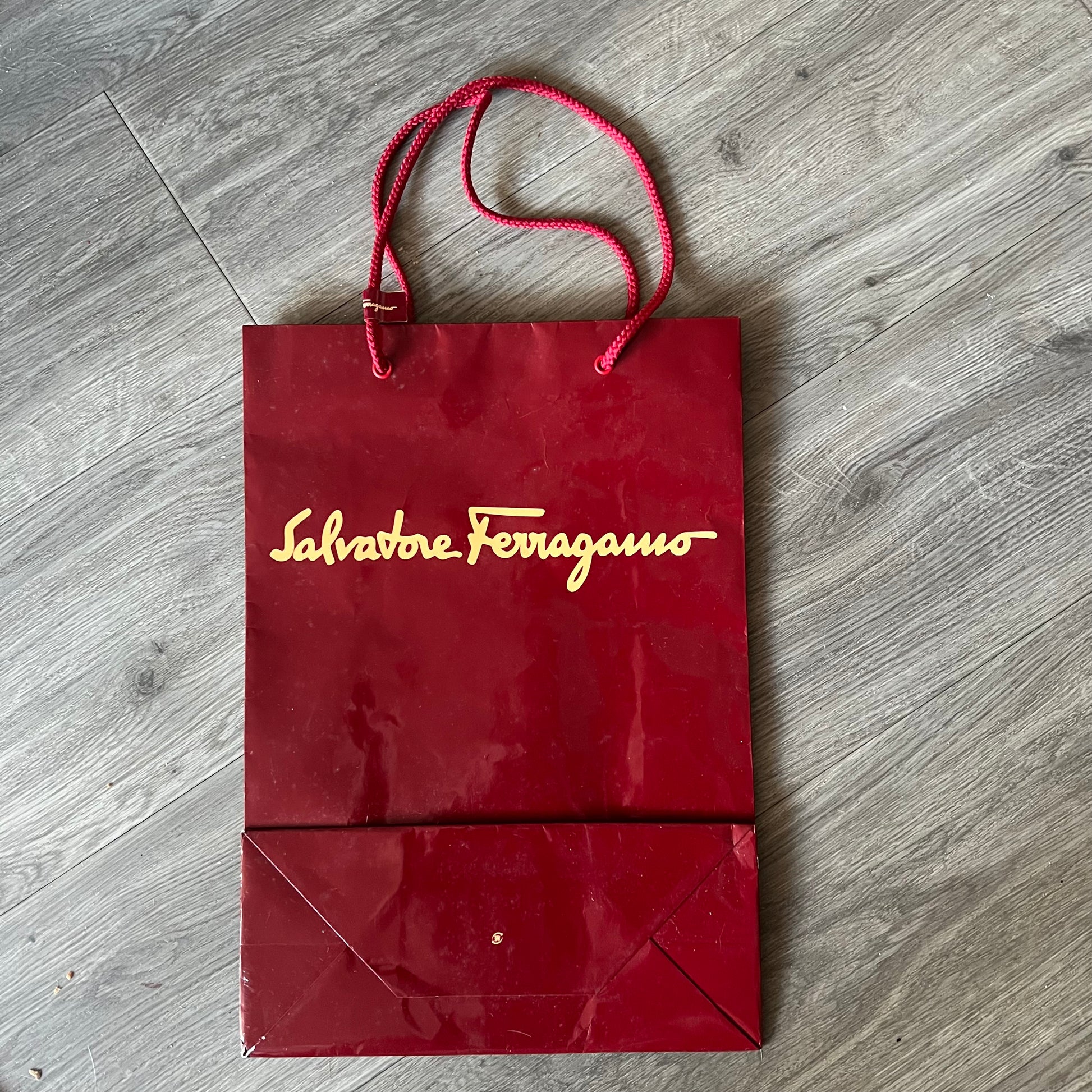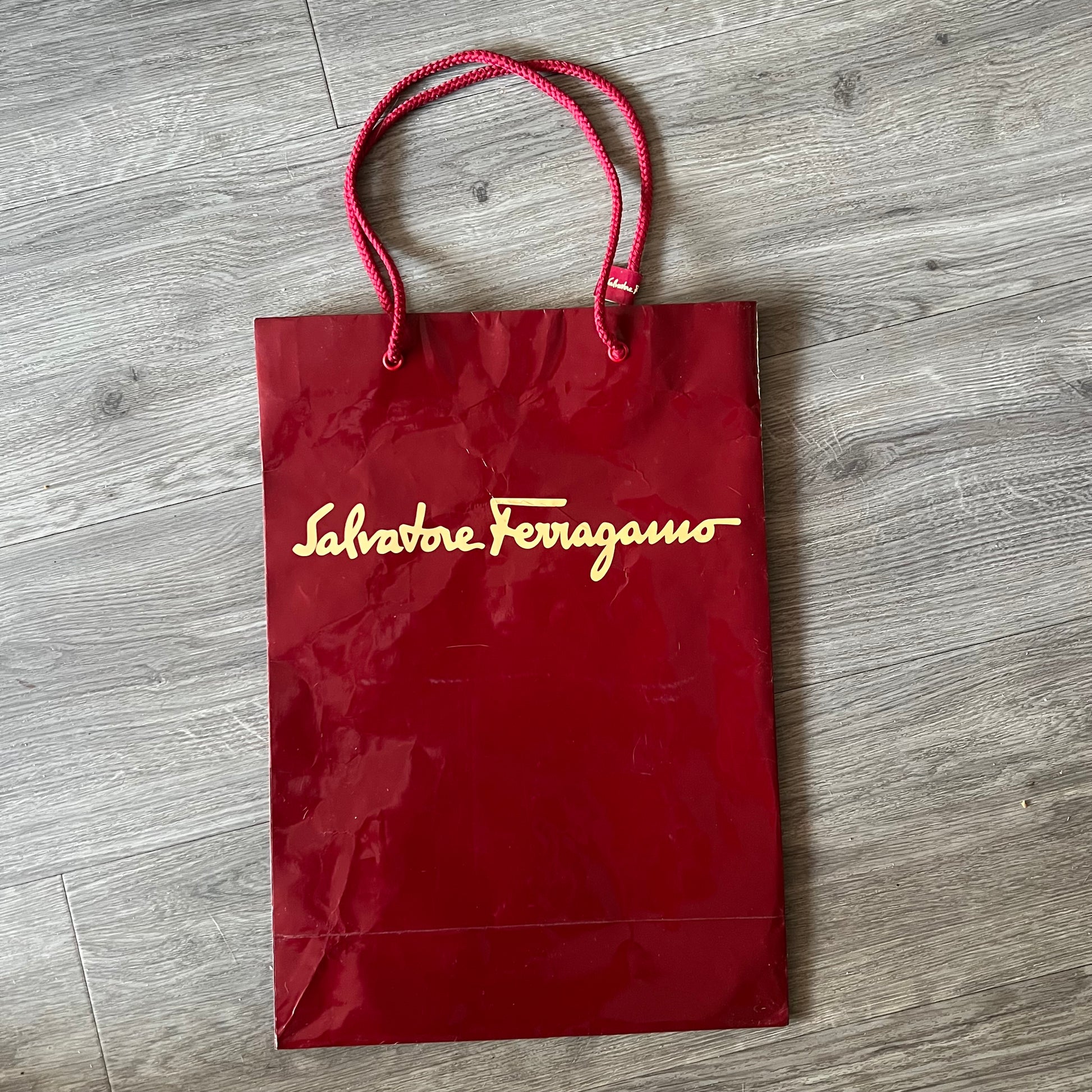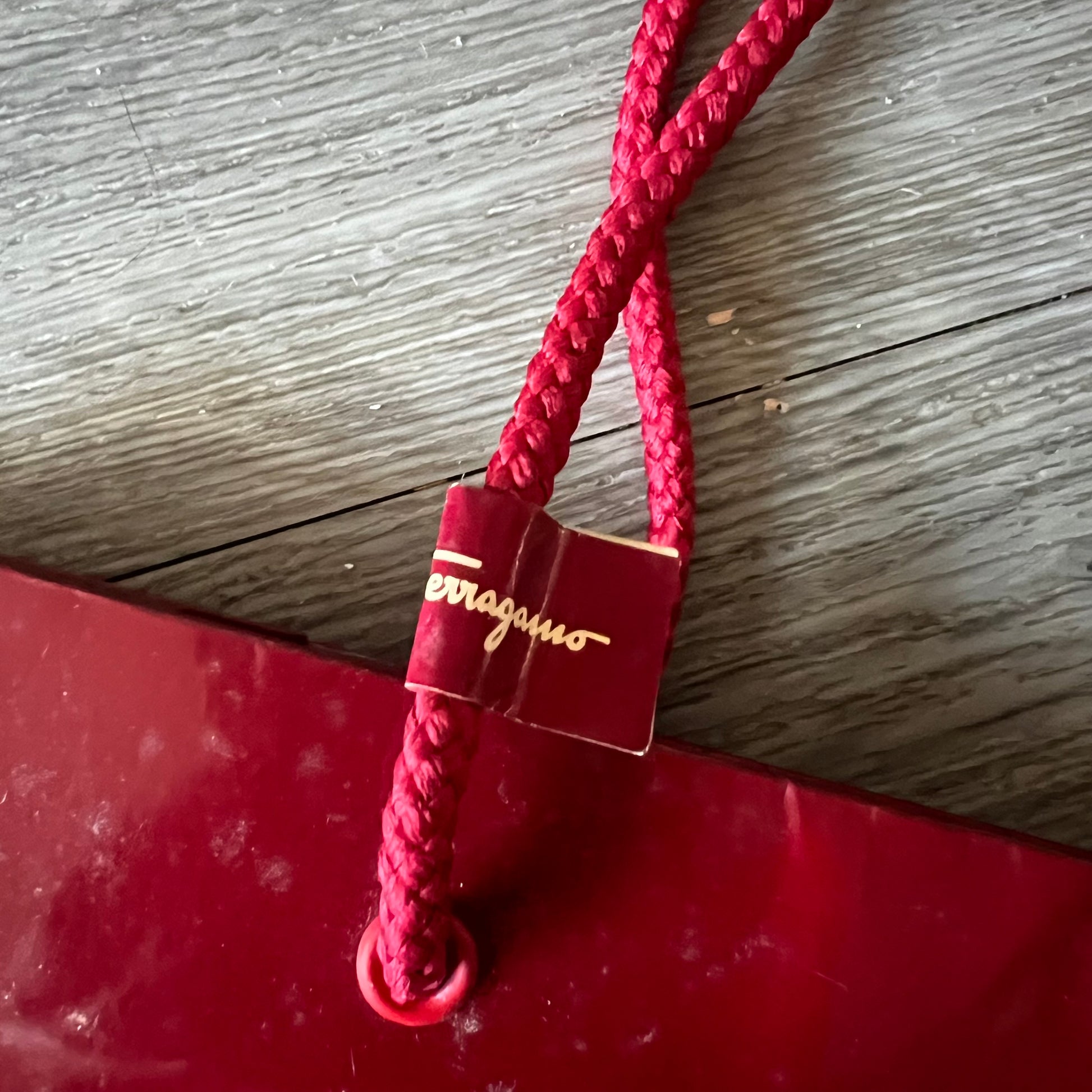 Authentic Pre Owned SALVATORE FERRAGAMO Red Shopping Bag 15.75x11x4.80 inches
