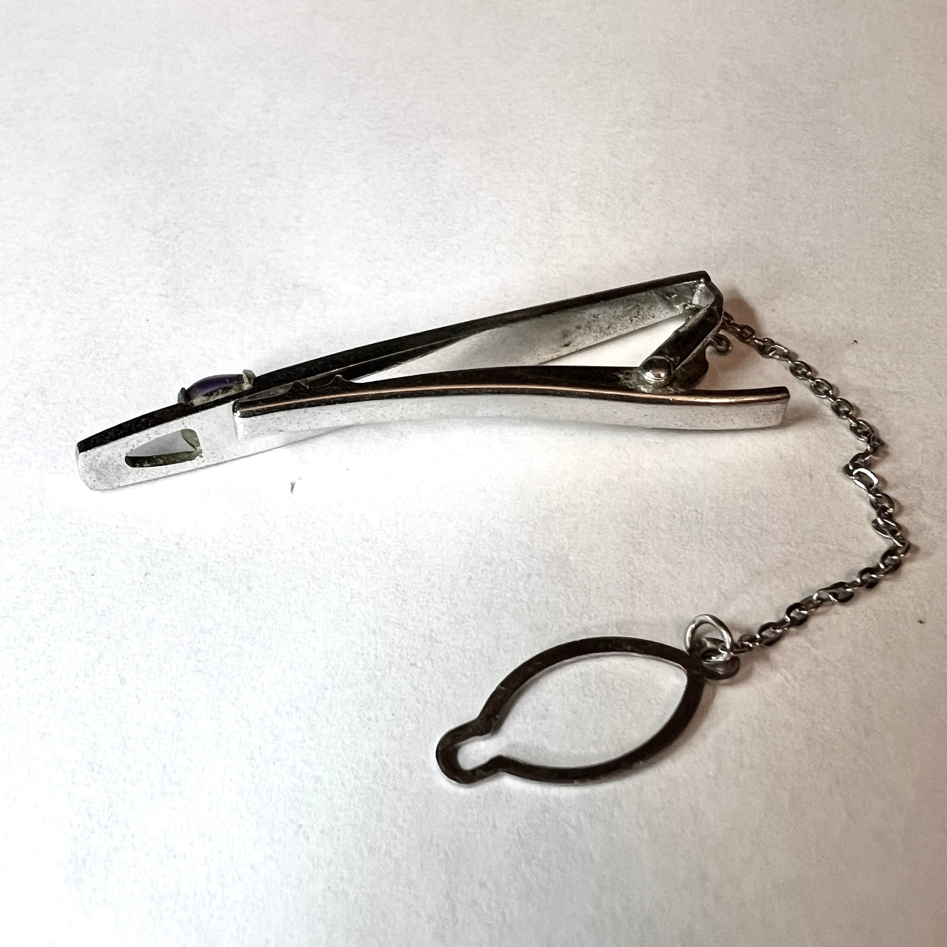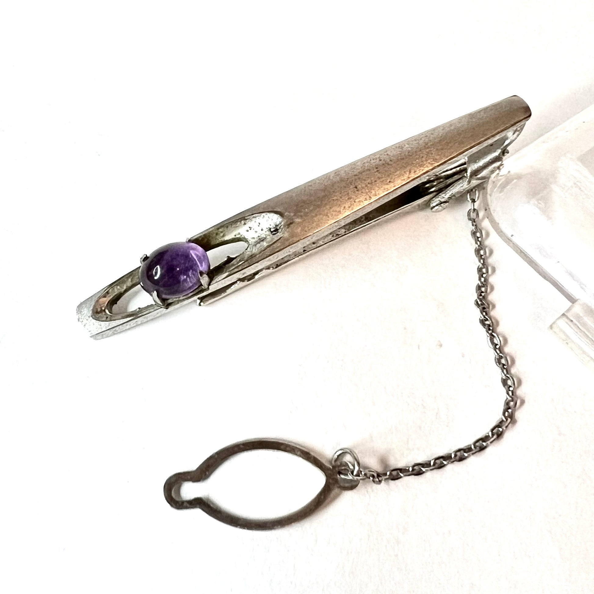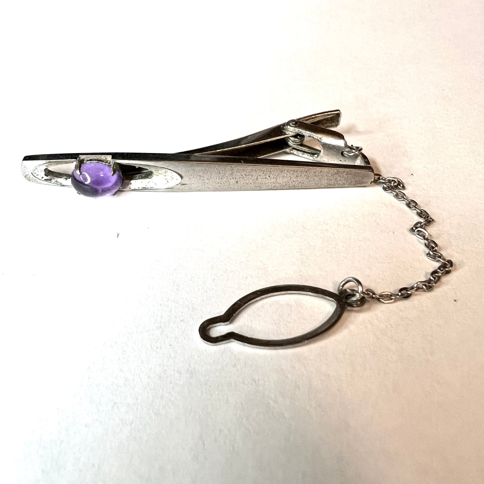 Pre Owned Stainless Steel Purple Stone TIE BAR