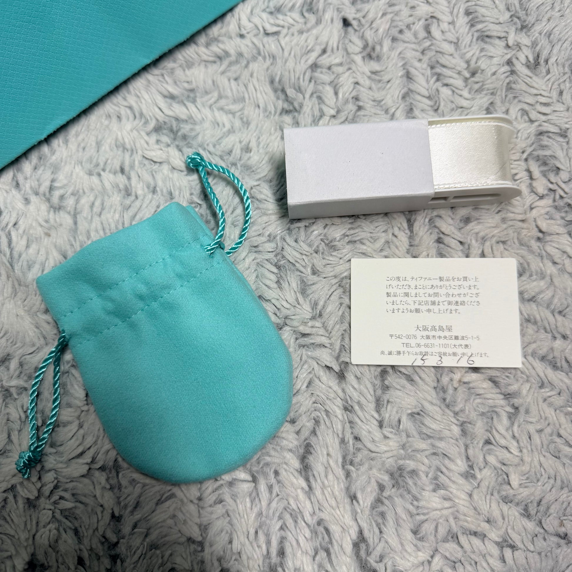 TIFFANY & CO. Jewerly Pouch 3.75x2.80” + Box 3.75x3x1.40” + NEW Original Ribbon + Card + Shopping Bag 9.75x8x4”
