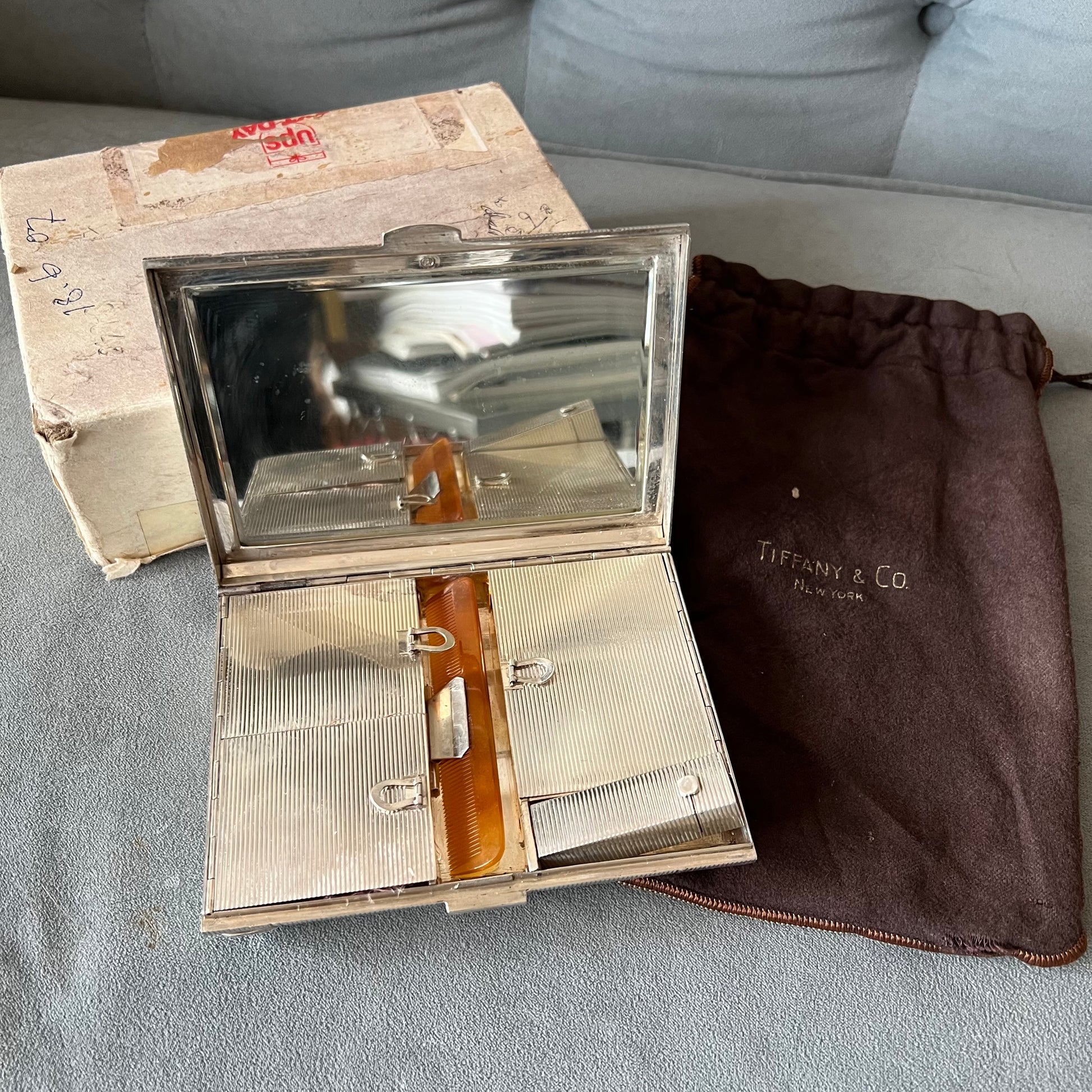 Authentic Vintage TIFFANY & CO. 925 Sterling Silver Makeup Kit 5.55x4.10x1.5 inches 580g + Dust Bag + Box