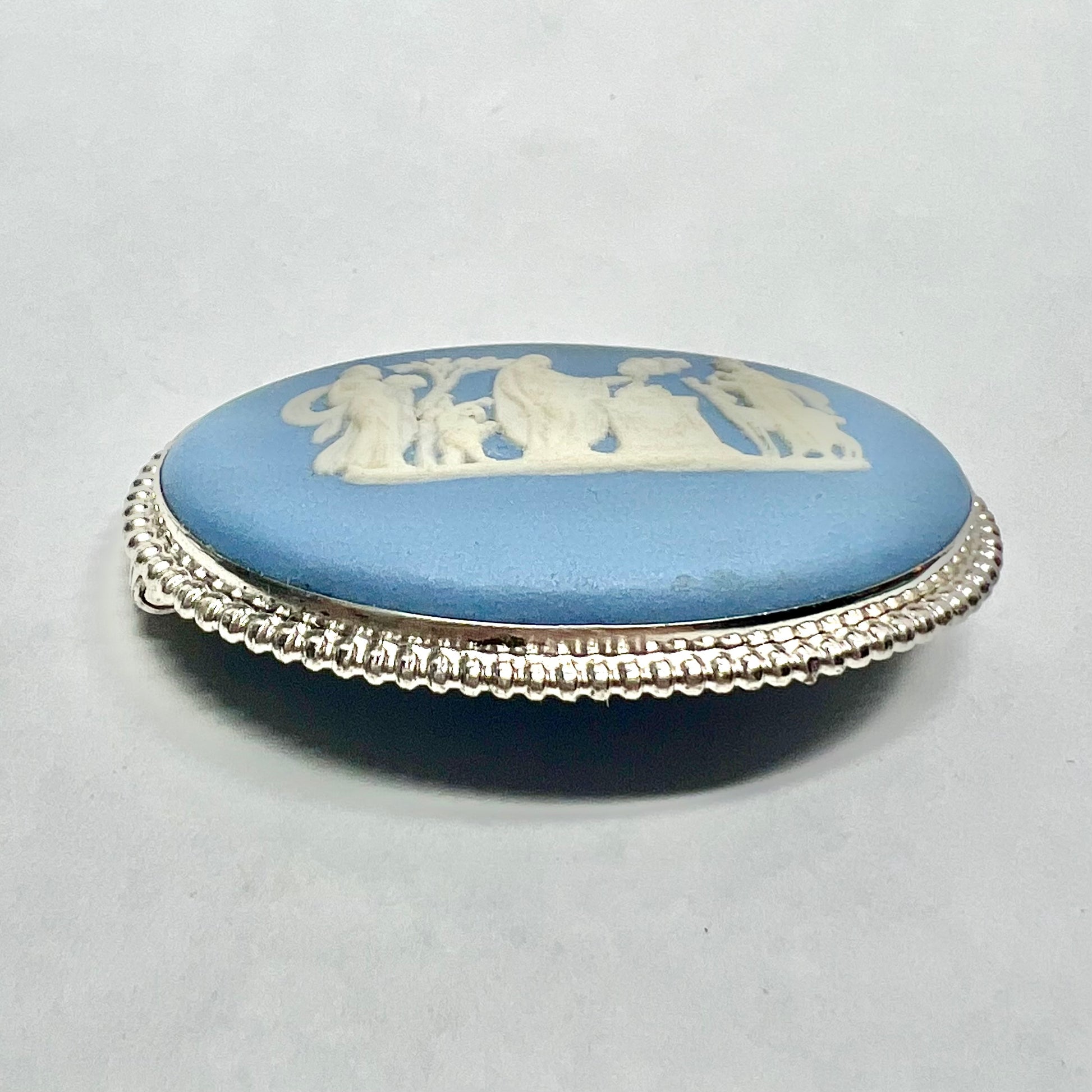 Authentic Pre Owned WEDGWOOD Elegant Blue Cameo Silver Tone Brooch Made in England